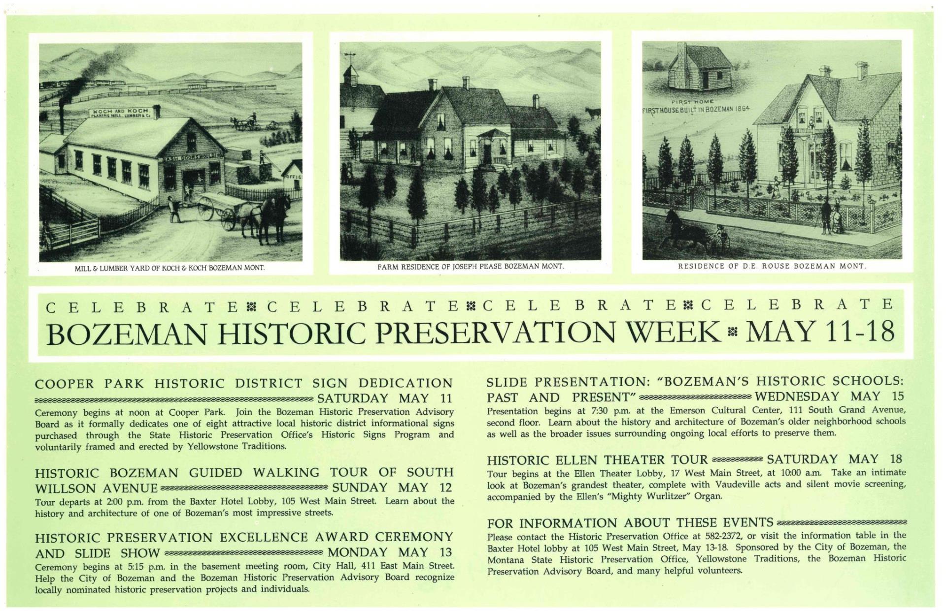 Over the years, the Historic Preservation Advisory Board (HPAB) has celebrated Bozeman's rich history and cultural heritage through community events and an annual awards program. From 1994 until 2012, these celebrations were recognized through Historic Preservation Days