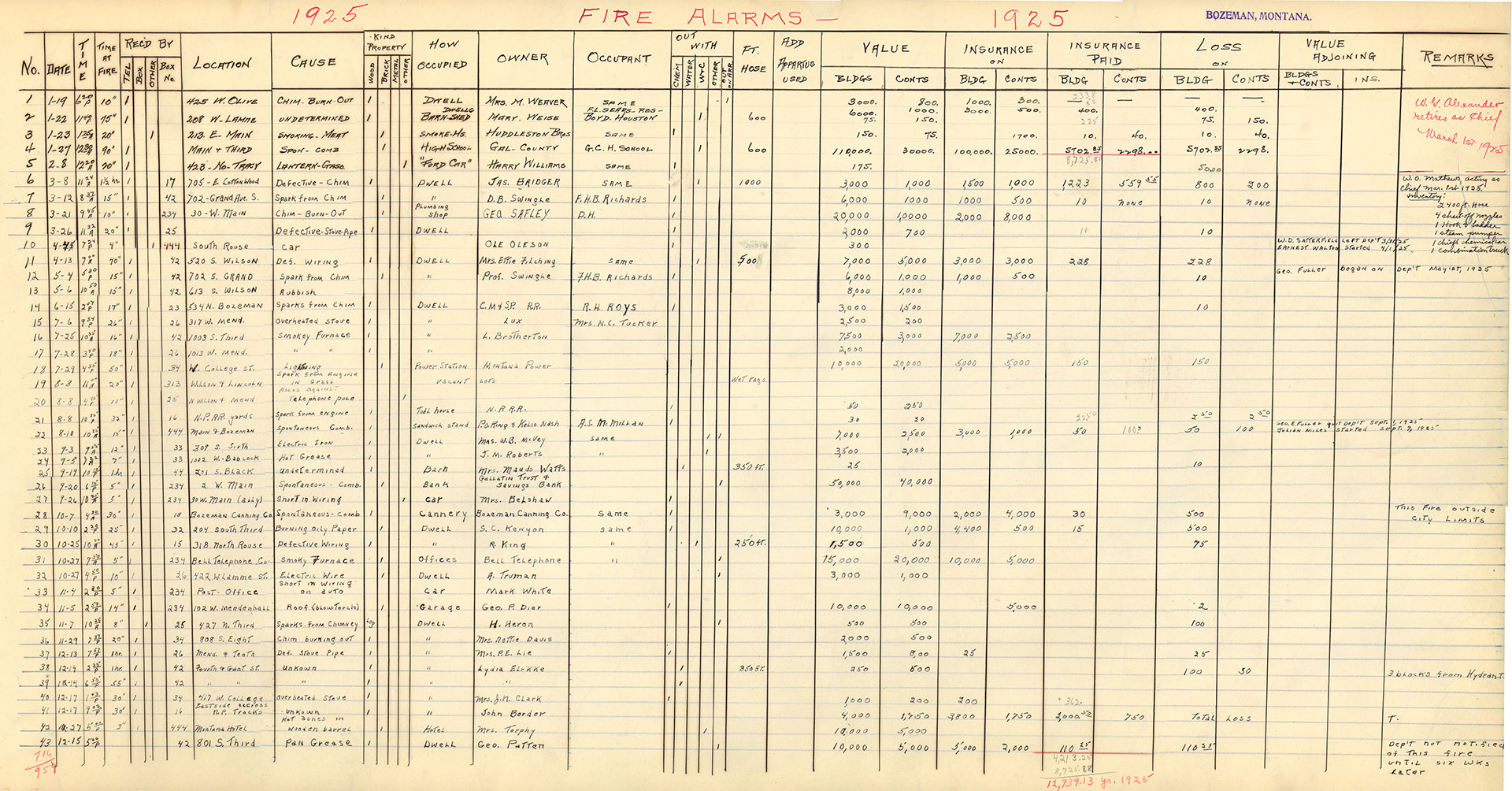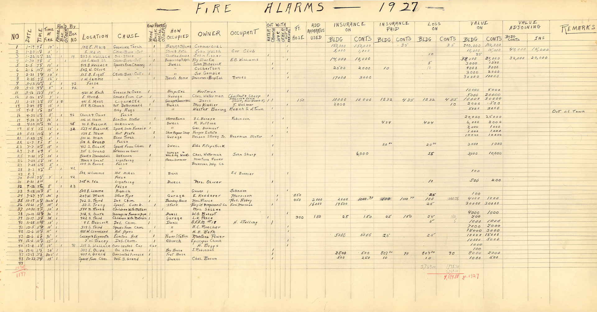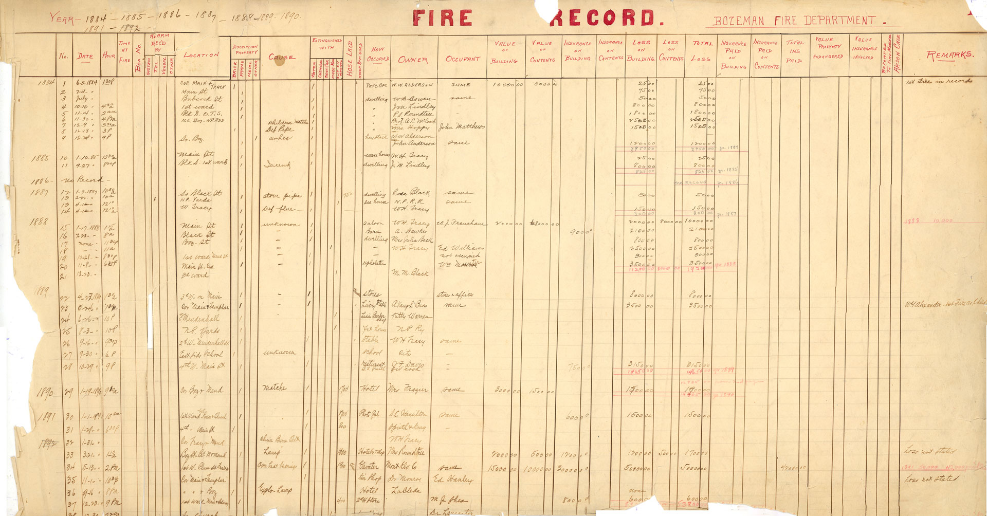 - 1889 - Fire Chief W. G. Alexander succeeded Bozeman's first Fire Chief, A.P. Clark and served in that role until 1925.